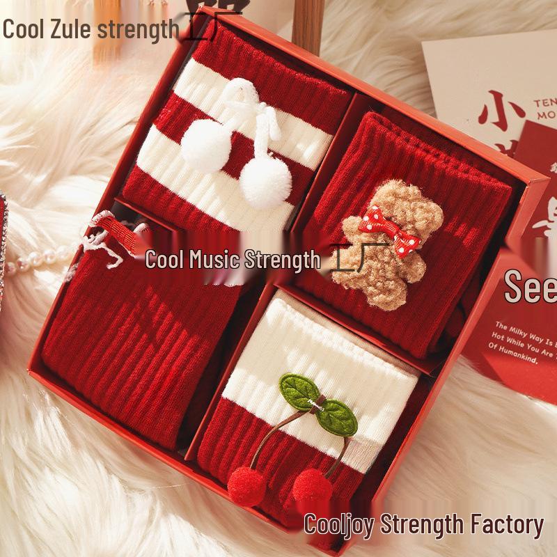 Women's Red Dragon Year Gift Socks Set: Knee-High Cotton Socks for Autumn, Winter, and New Year Luck