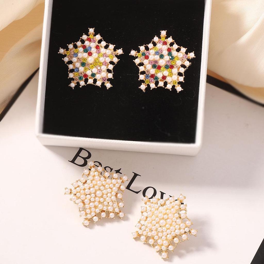 Colorful Zircon & Seed Bead Star Stud Earrings: Unique Cross-Border Christmas Design