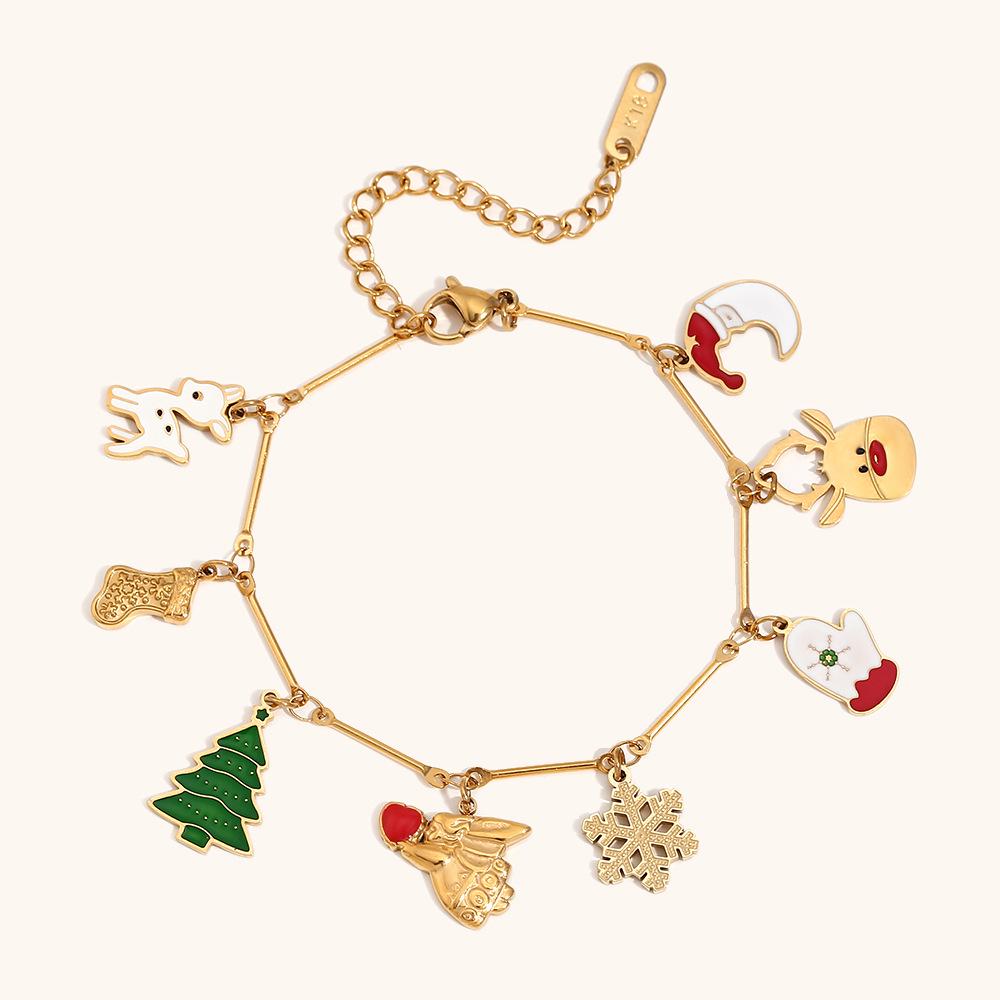 18K Gold-Plated Stainless Steel Holiday Bracelet & Christmas Pendant Necklace