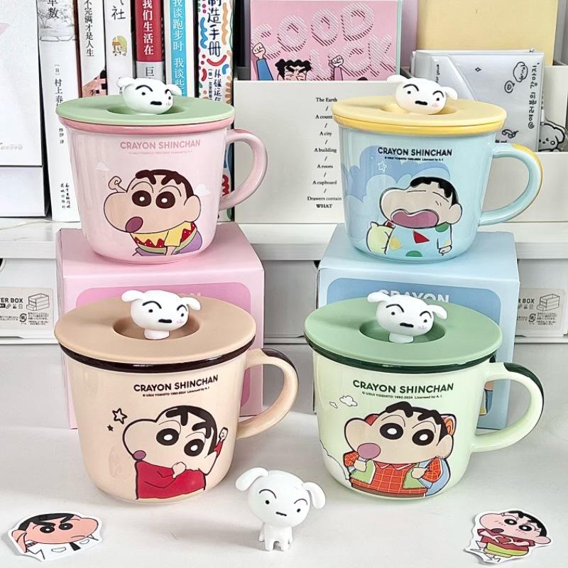 Crayon Xiaoxin Ceramic Mug with Lid Spoon Boys and Girls High Value Milk Scale Cup Couple Coffee Breakfast Cup