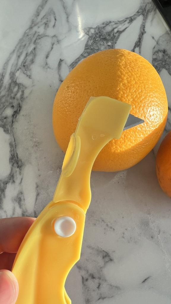 🍊 The small, handy orange peeler was delivered to me in Austria, perfectly packaged and consolidated, after four weeks of delivery.. 🍊 The product is foldable, thus the sharp and pointed knife is safely stored, as there is no risk of injury.! 🍊👍🔝 I am very enthusiastic about this peeler because it allows you to peel oranges well in a short amount of time. Absolutely recommendable 👍! 🎶 Music from Capcut pro