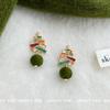 Hand-Painted Christmas Tree Zircon Flocking Pompon Earrings - 925 Silver Needle