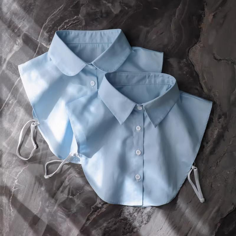 Light Blue Cotton Faux Collar Girls' Versatile Shirt Sweater - Decorative Collar for Casual Workwear