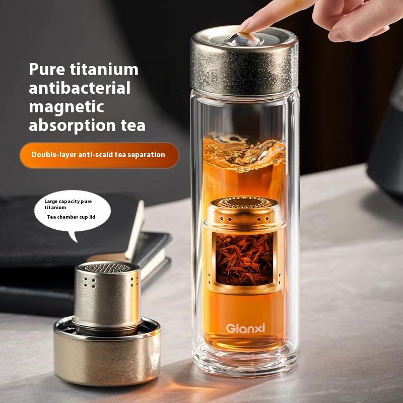 Gianxi Pure Titanium Magnetic Tea Separation Glass Cup For Men'S High-End Magnetic Bubble Tea Cup Glassware Glass Bottle
