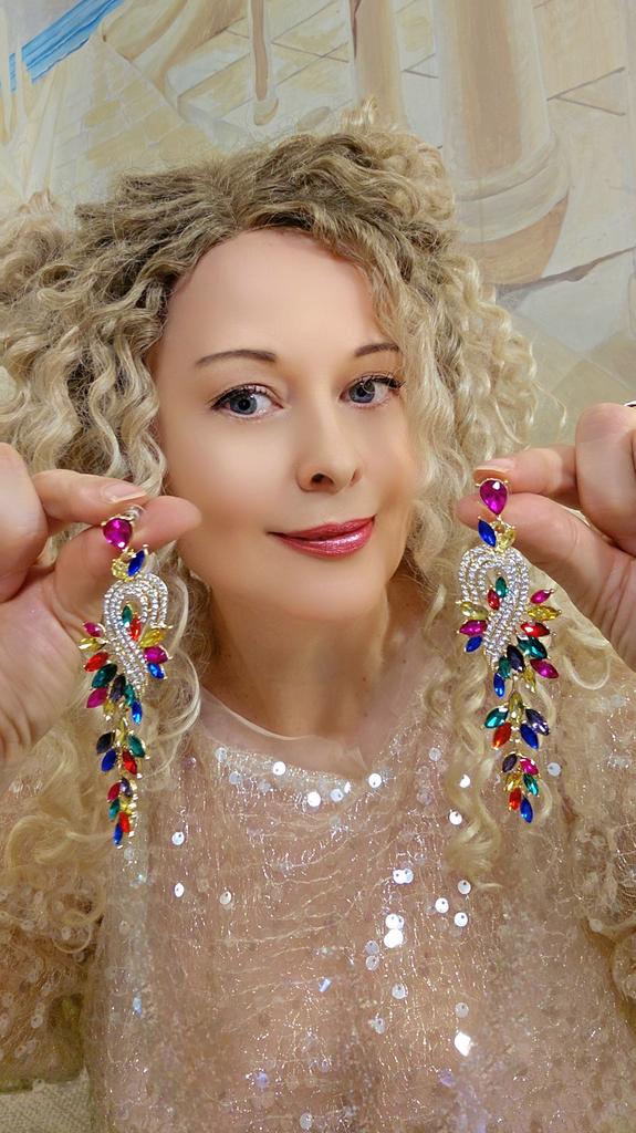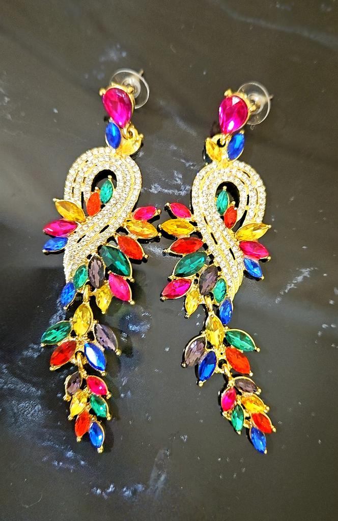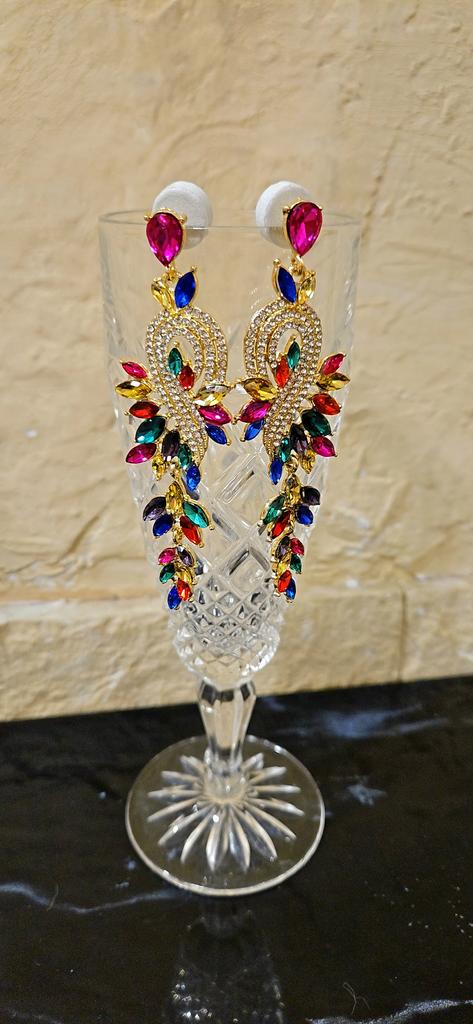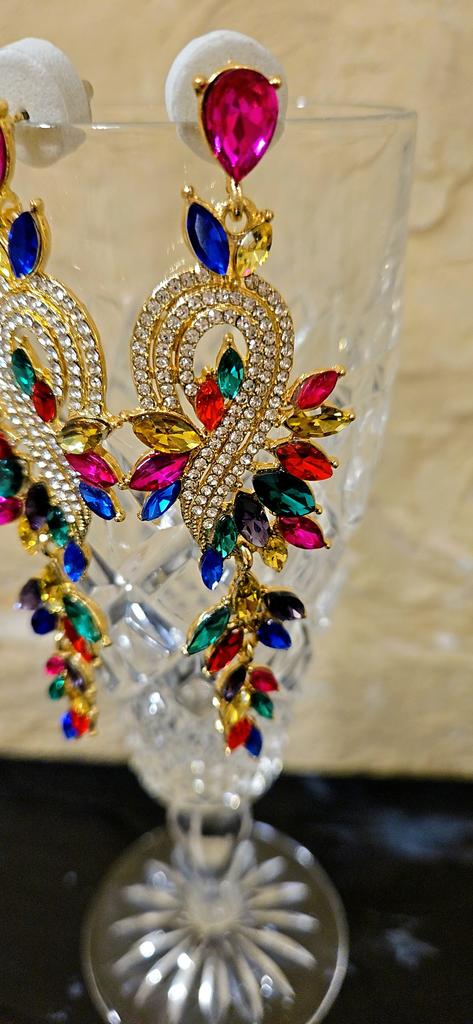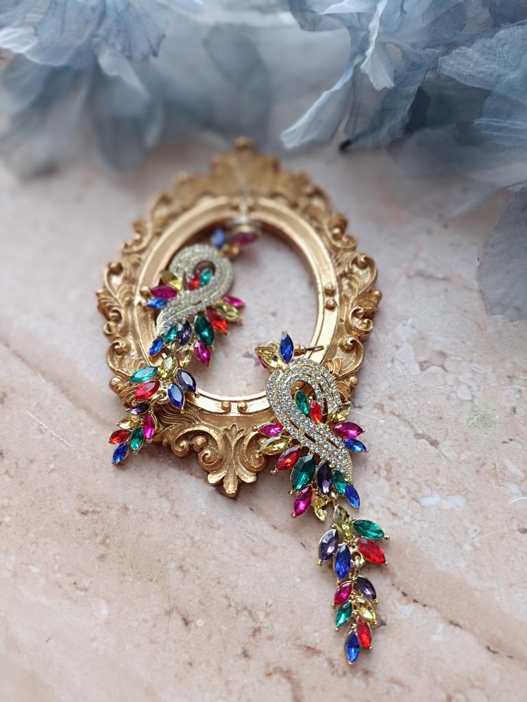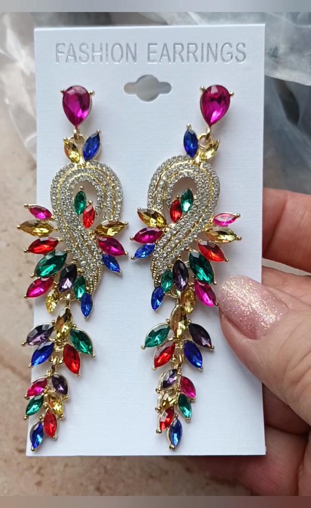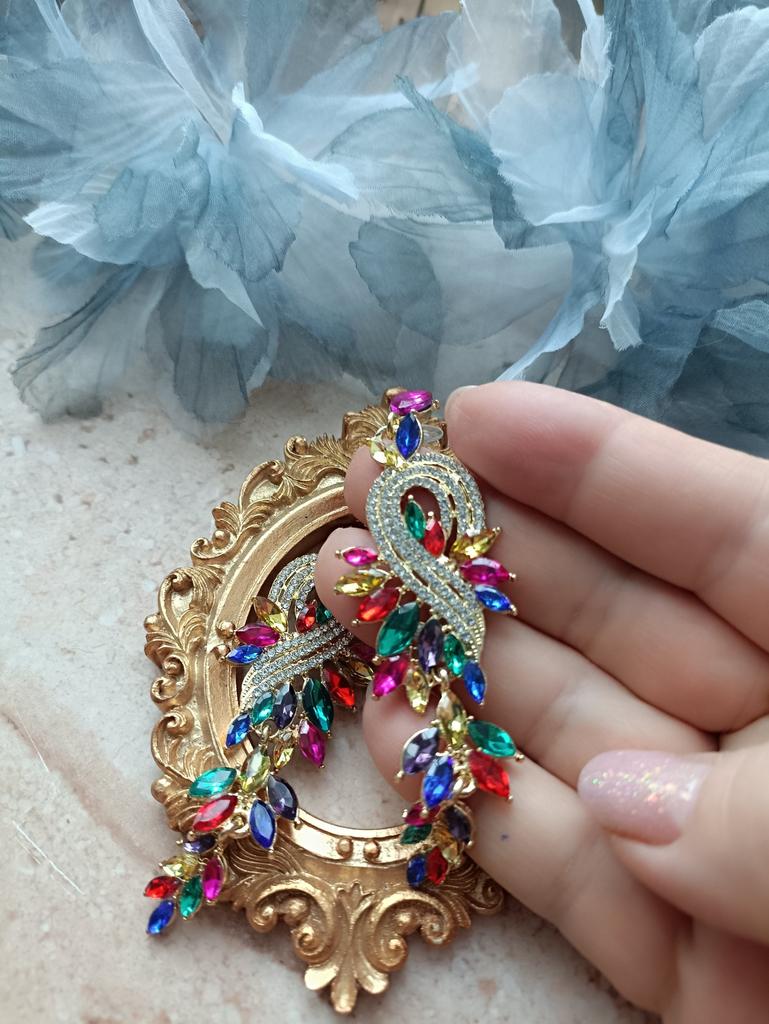 Small Face High-end Colored Glass Rhinestone Earrings Women, Personality Exaggerated Stud Earrings Earrings