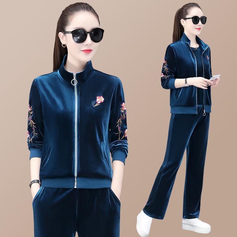 Elastic Waist Sportswear Suit Female Fashion Middle-Aged And Elderly Mothers Spring Autumn Three Piece Set Women Elegant