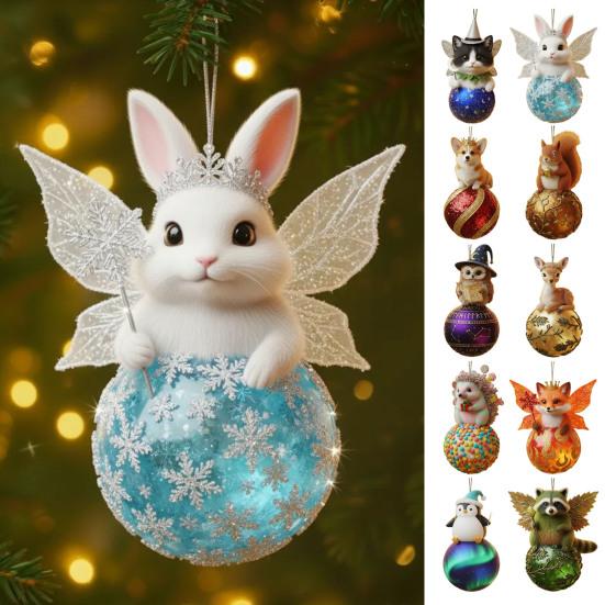 Christmas Animal Ornament 2D Acrylic Wildlife On Ball Hanging Ornaments for Winter Xmas Tree Home Party Decor