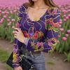 Women's Winter Slim-Fit Base Layer T-Shirt Fashionable Print V-Neck Pullover Long-Sleeved Top