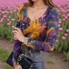 Women's Winter Slim-Fit Base Layer T-Shirt Fashionable Print V-Neck Pullover Long-Sleeved Top