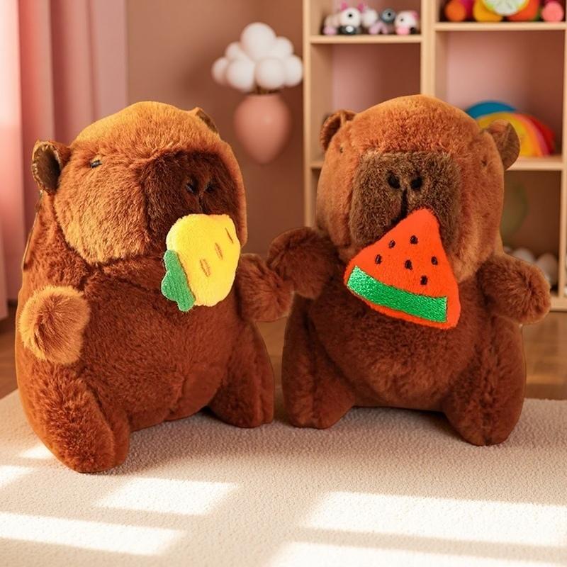1-20PCS Cute Cartoon Capybara Pendant Pull-out Fruit Kapybara Plush Keychain Cute Plush Doll Bag Hanging Ornament Gift Pendant