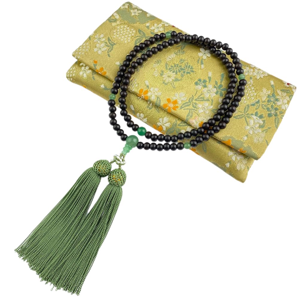 [WONDERFUL LOTUS Myorenka] Myorenka Rinzai Buddhist Prayer Beads for Women, Formal, Ebony and Indian Jade Finish, 8 Inches, Includes Prayer Beads