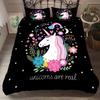 Printed Cute Unicorn White Comforter Bedding Sets Full Size Five Stars Flowers Cartoon Bedding Duvet Cover Sets Kids Single Gty