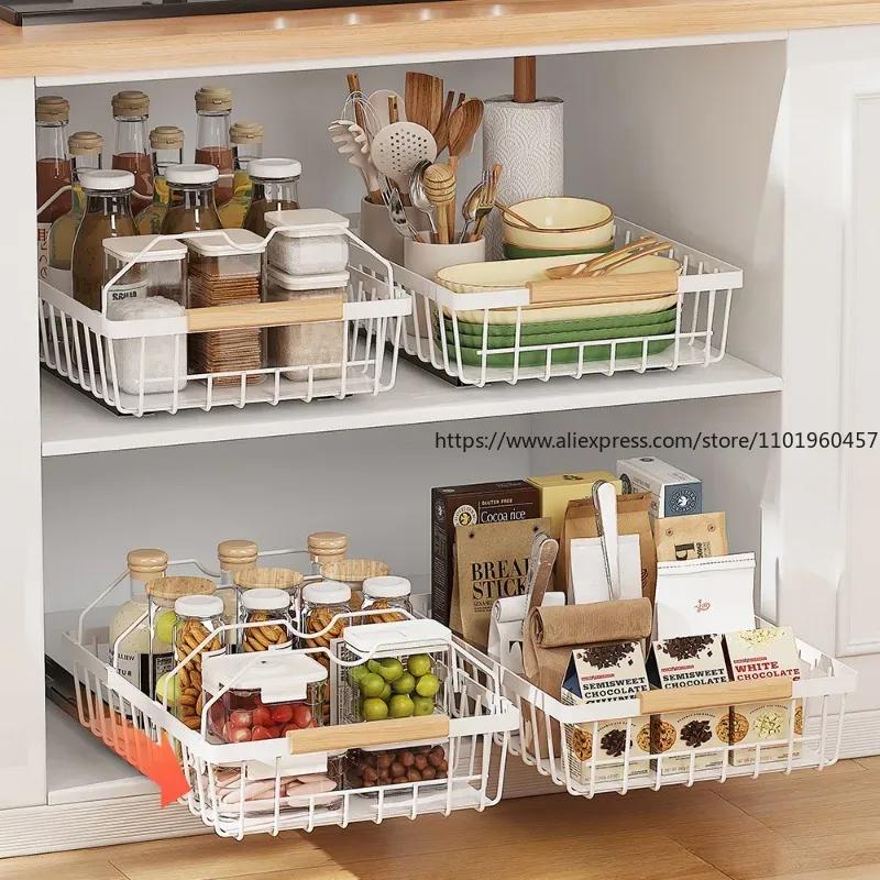WMMO Pull-Out Cabinet Organizer Kitchen Seasoning Jar Dish Bowl Storage Rack Multipurpose Storage Rack Slide Out Pantry Shelves