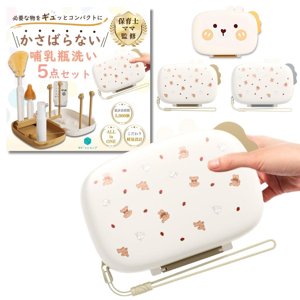[Supervised by a Childcare Worker] [Compact Design] Portable Travel Bottle Cleaning Set with Drying and Brush, MK's Shop (Beige)