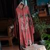 Johnature Vintage Women Red Print Floral Long Shirts Button Stand Long Sleeve Blouses Autumn Chinese Style Shirt