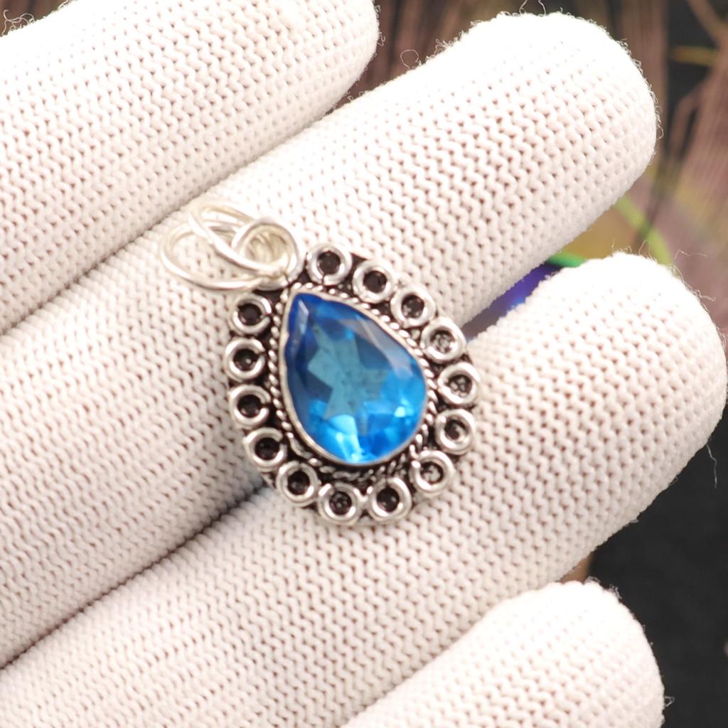 Swiss Blue Topaz Gemstone 925 Sterling Silver Jewelry Designer Pendant 1.02" For Thanksgiving Gift PP-26-8