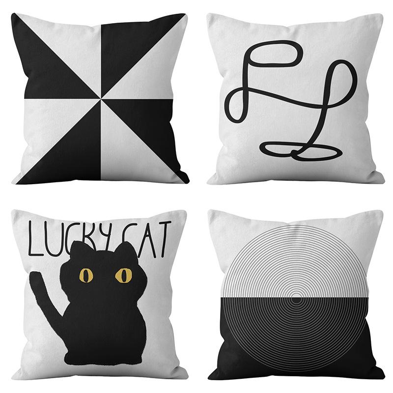 Cartoon Black and White Abstract Pattern Home Sofa Pillowcase