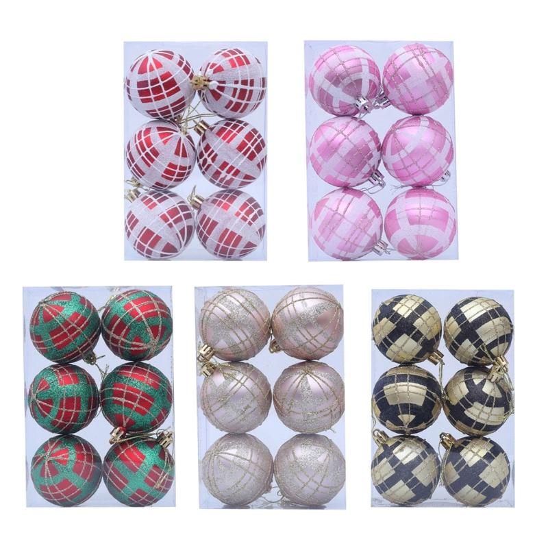 2 Boxes Christmas Tree Decorations Tartan Pattern Plastic Hanging Ball Festival Home Holiday Party Decorative Accent