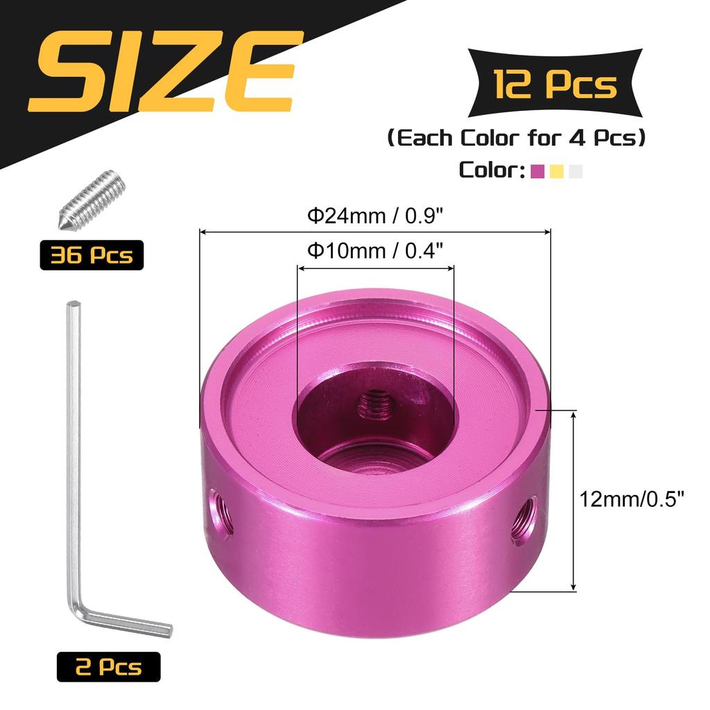 Uxcell 12pcs Footswitch Toppers Guitar Pedal Button Caps Metal Footswitch Top Covers Inch Multicolor for Guitar Effect Pedal and Silver 3/8 Buttons,
