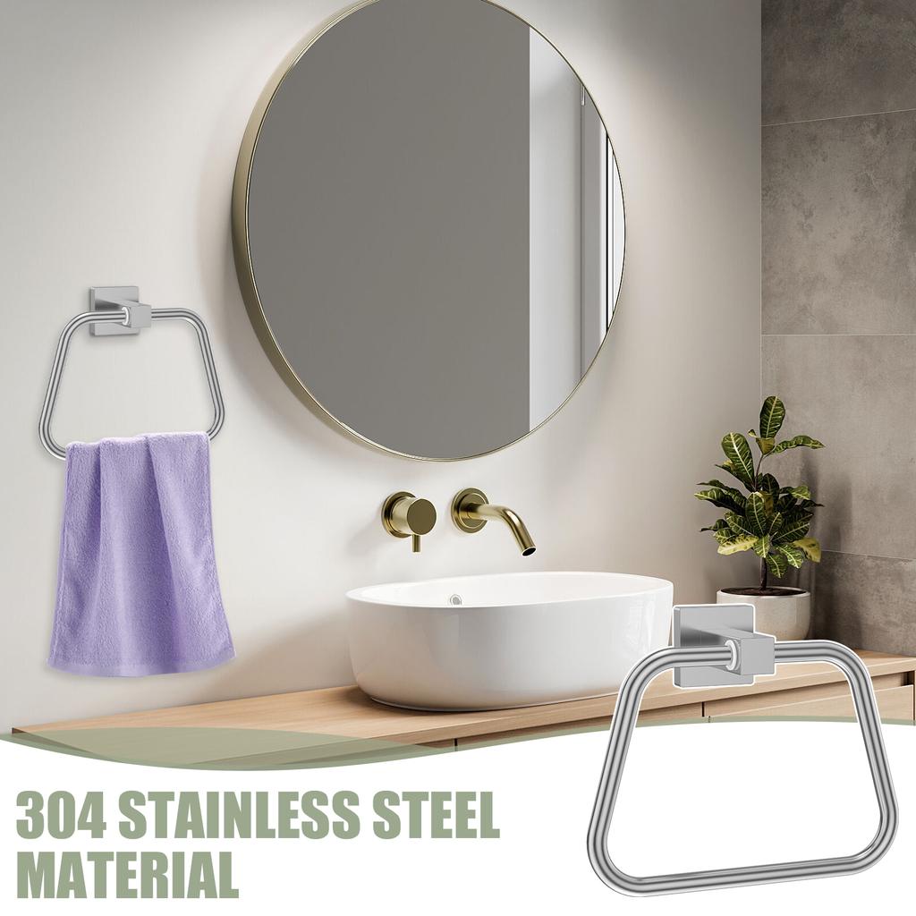 Stainless Steel Towel Holder Bathroom Wall Towel Hanger Ring Moisture Proof Minimalist Design Shower Storage Rack