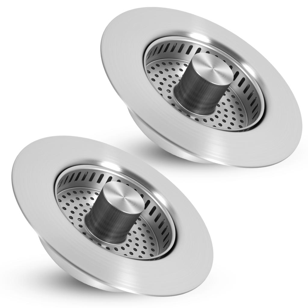 2Pcs Pop Up Sink Drain Strainer Stainless Steel Sink Stopper Hair Catcher 3 In 1 Kitchen Sink Filter Screen for Home Bathroom
