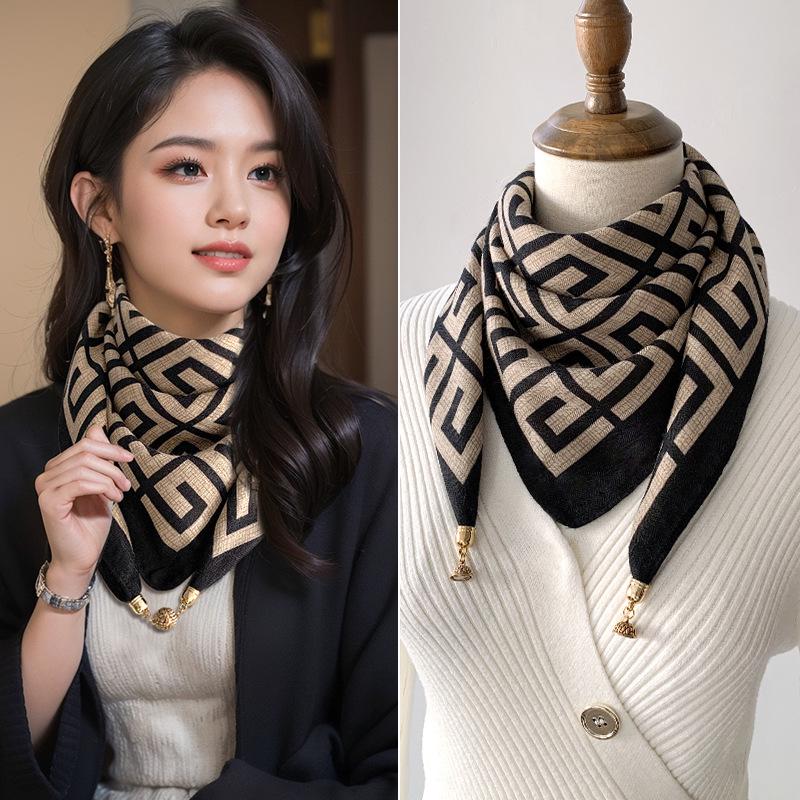 Women's Magnetic Triangle Neck Protection Scarf - Cotton & Linen High-End Square Scarf for Autumn/Winter