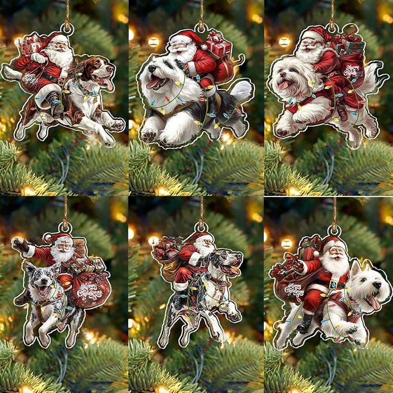 2026 Santa Claus And His Funny Dog Ornament 2D Flat Acrylic Pendant Christmas Decoration For Home Xmas Tree Year Kerst