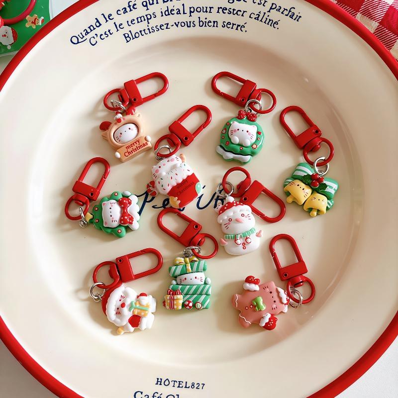 Cute Christmas Keychain Cartoon Santa Claus Snowman Kitten Pendant Key Ring Backpack Decoration Accessories Year Gift