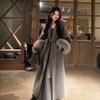 Elegant Faux Fur Sleeve Woolen Jacket With Belt Women Winter Lace Up Long Coats Fashion Office Lady Outerwear High Street