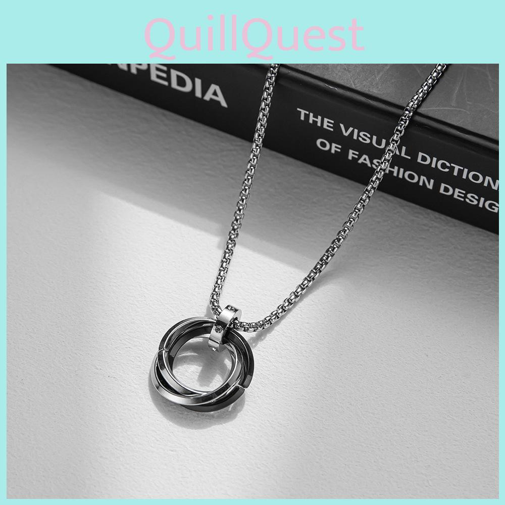 This titanium steel necklace features interconnected geometric circle pendants, delivering a minimalist, modern look. Made of durable titanium steel, it measures 51-80cm, ensuring comfortable wear for daily use. Ideal for casual or contemporary fashion, it enhances any outfit and suits both men and women. Wipe clean with a damp cloth to maintain its finish.