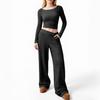 Women's Long-sleeved Top And Elastic Waist Wide-leg Pants Fashion Casual Suit