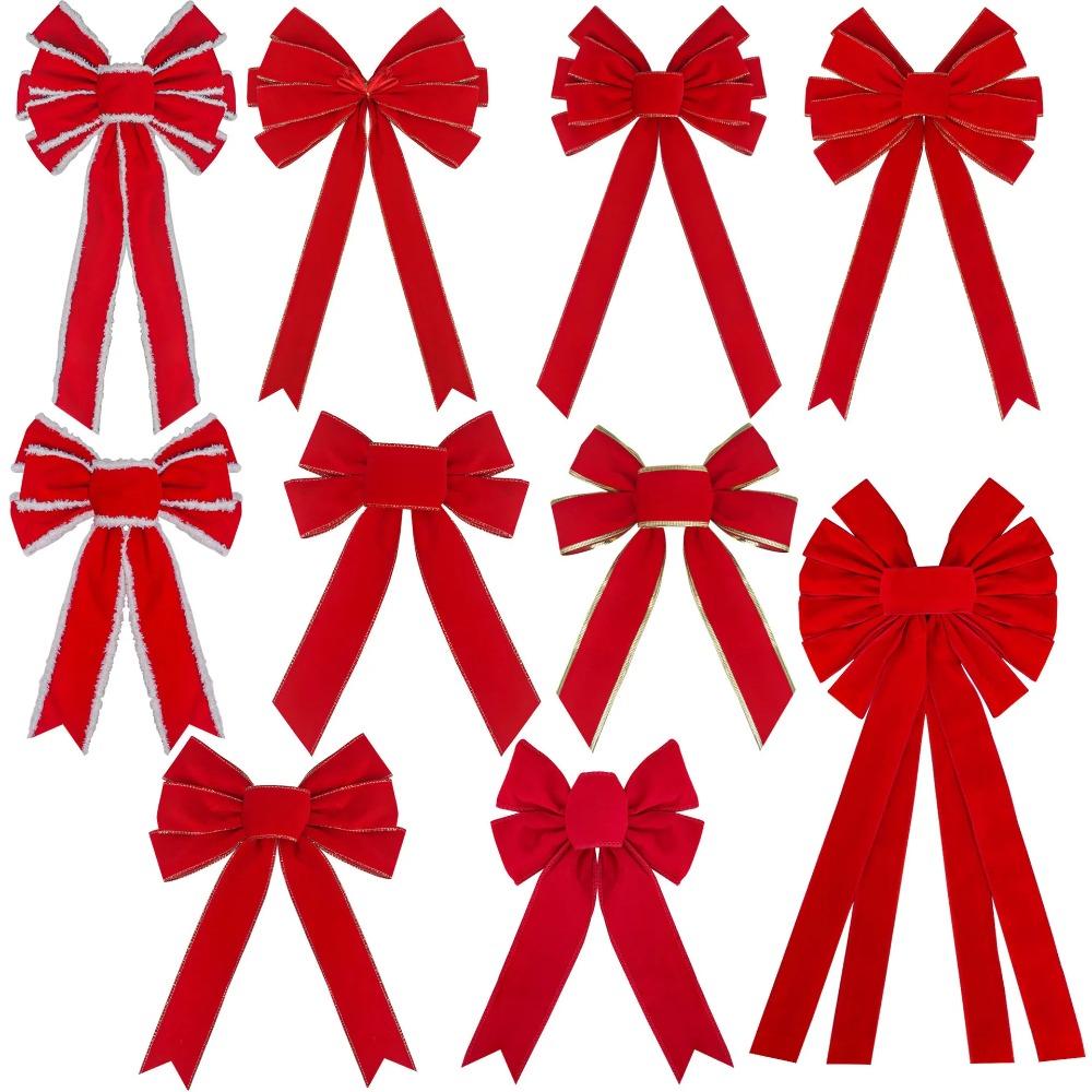 Red Christmas Bows Outdoor Decorations Large Christmas Tree Top Bow Velvet Wreath with Glitter Gold Edge Front Door Decoration