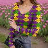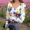 Women's Winter Slim-Fit Base Layer T-Shirt Fashionable Print V-Neck Pullover Long-Sleeved Top