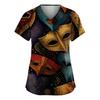 Women's Fashion V-Neck Short-Sleeved Workwear With Pockets Carnival Print Top Caregiver Uniform