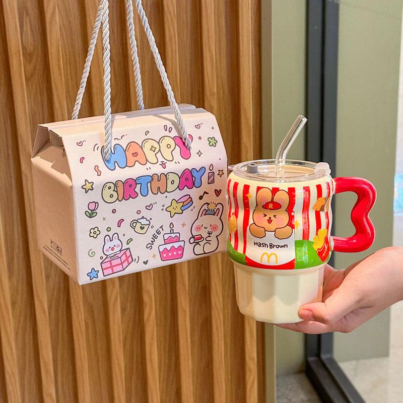 Milk Fufu Cute French Fries Straw Cup Girls' High-value Ceramic Mug for Girlfriends Birthday Gift Souvenirs