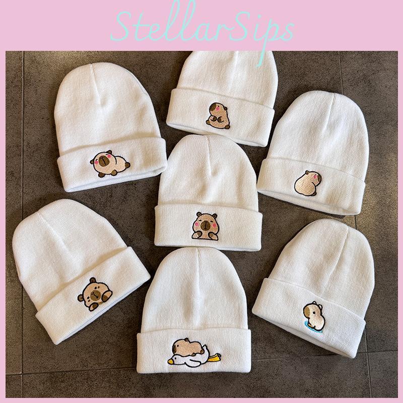 Capybara Womens Animal Embroidered Beanie For Casual Outdoor Wear