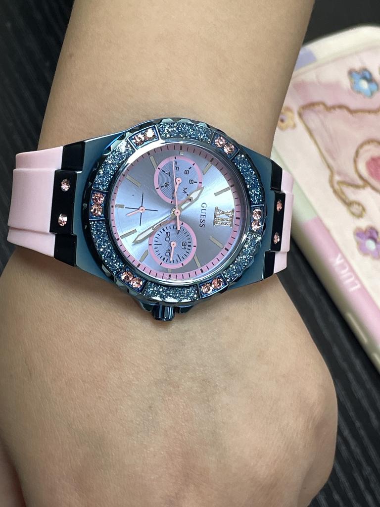 What a cute color combination! Both the pink and blue are lovely. I like the watch face, and the strap is very comfortable.