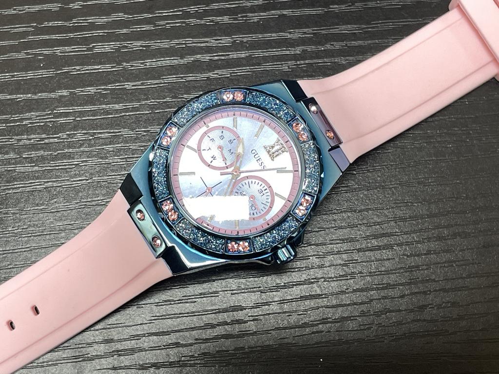 Guess Blue Dial Pink Silicone Strap Women's Quartz Watch - W0775L5
