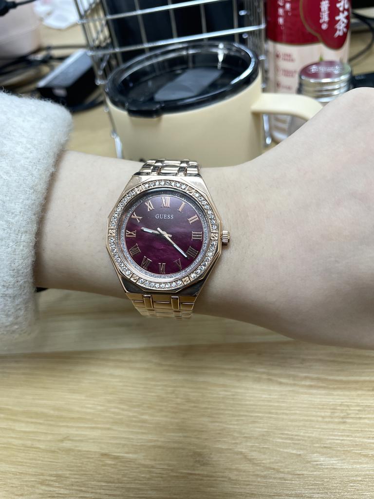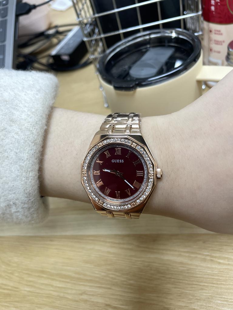 Guess Ladies' Quartz Watch with Deep Red Dial and Gold Stainless Steel Strap - GW0770L3