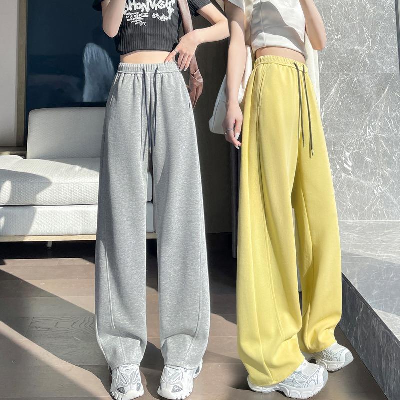 Spring Autumn Solid Elastic Waist Wide Leg Pants Women Loose Casual Drawstring All-match Sweatpants Trousers