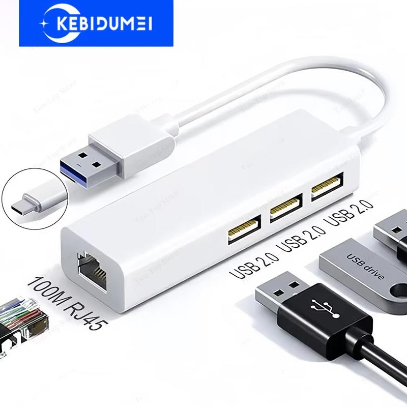 4-in-1 USB HUB USB C Dock Station USB Ethernet Adapter USB To 100Mbps RJ45 USB Splitter OTG Adapter For PC Laptop Macbook Pro