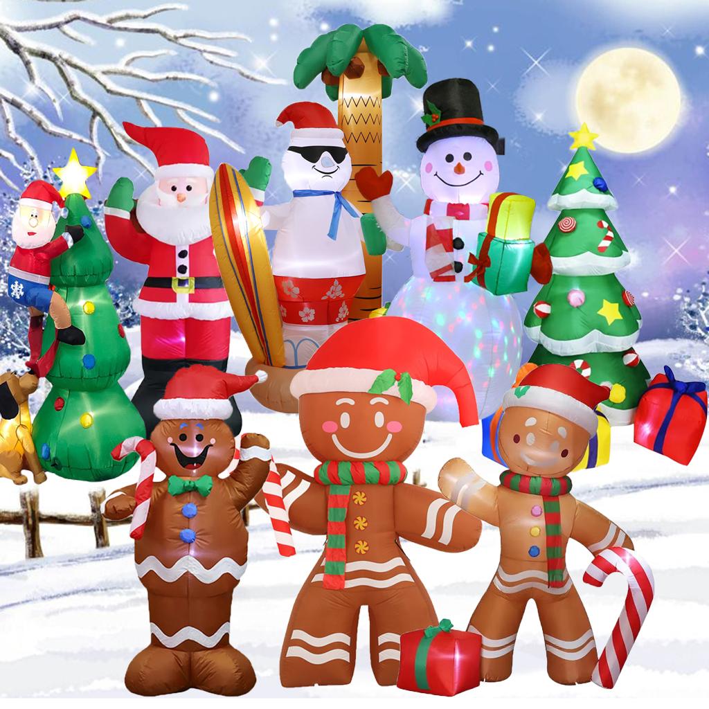 Christmas Inflatable Decorations with LED Lights, Giant Snowman, Gingerbread Man, Gift Bag, Lawn Yard Party Xmas Ornaments