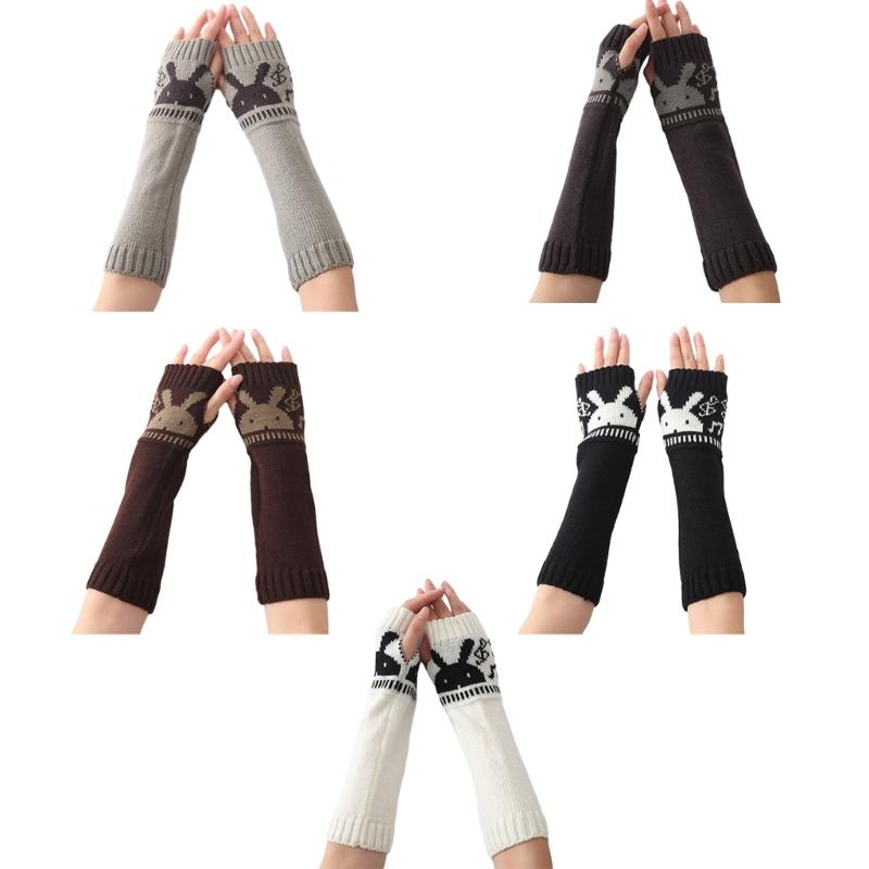 Womens Winter Warm Elbow Long Fingerless Thumb Hole Gloves Mittens Knitted Arm Warmer Cute Rabbit Fingerless Glove
