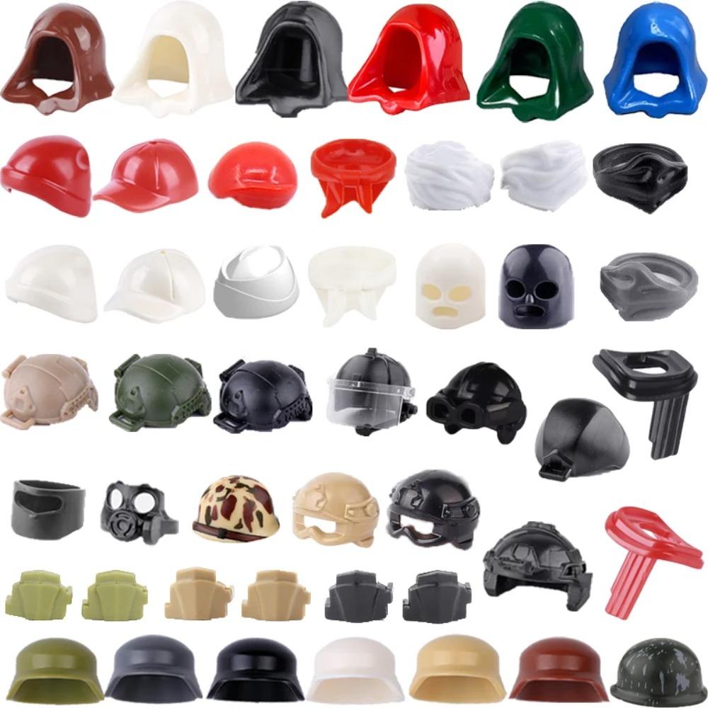 MOC WWII Military Building Blocks Accessories Figure Soldier Ninja Helmet Toy Hat Mini Brick Scarf Mask Knee Pads Gift Toys X027