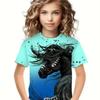 Summer Cute Animal Creative Colorful Horse Pattern Printed T-shirt Soft Comfortable Round Neck Short Sleeve Children's T-shirt