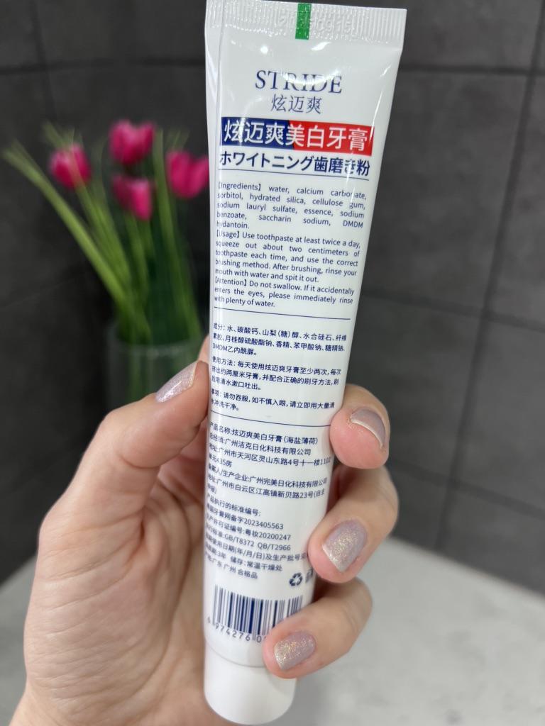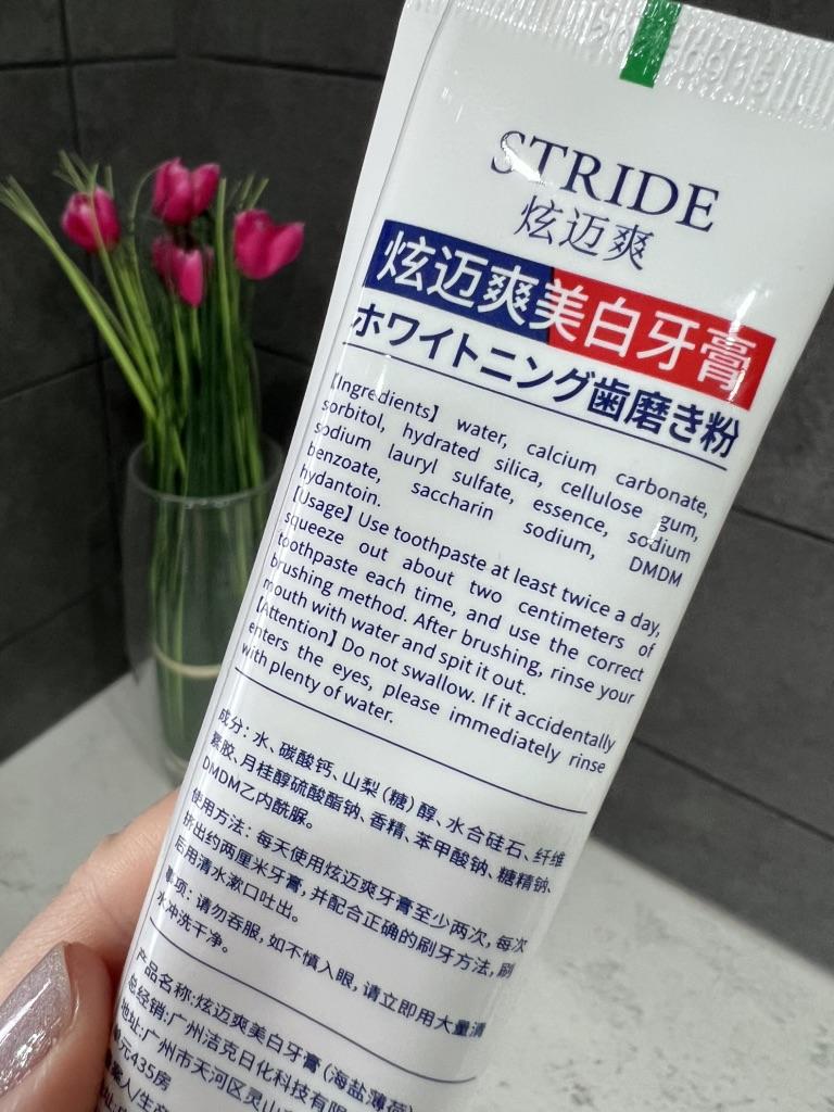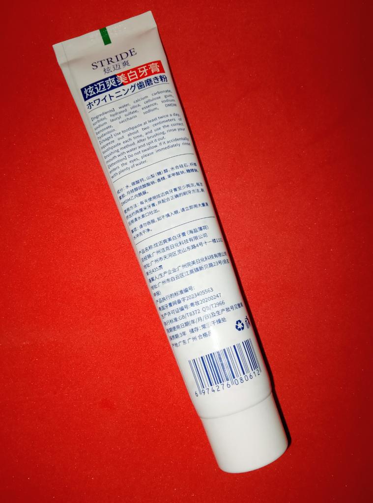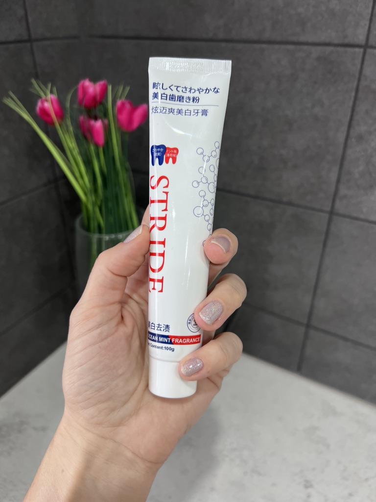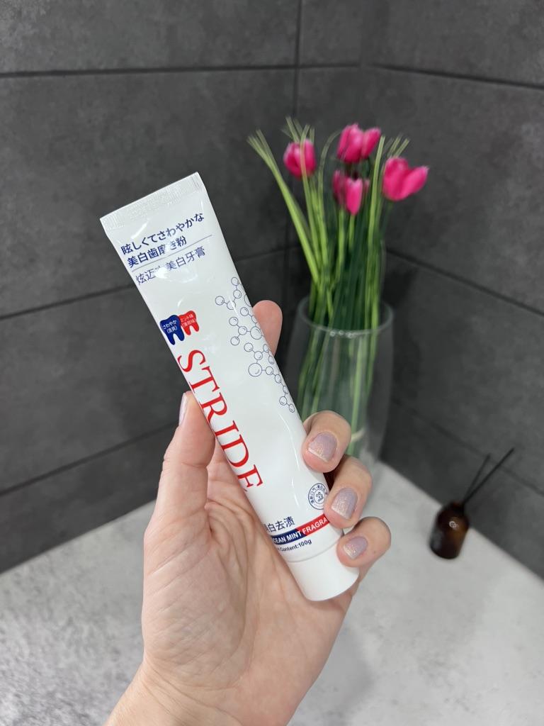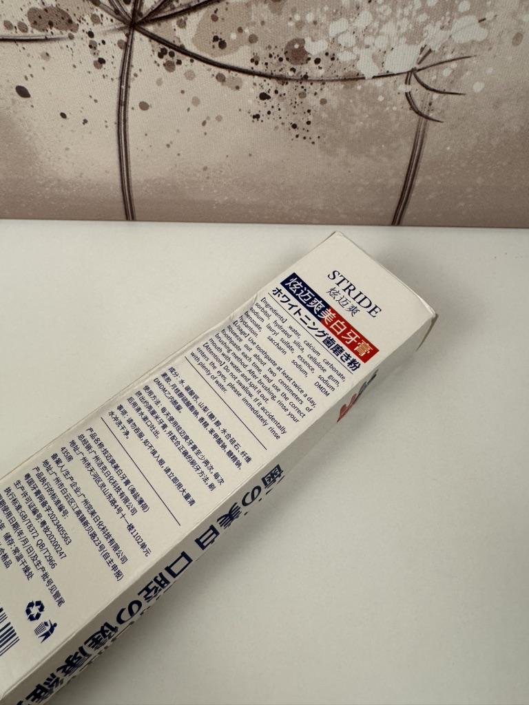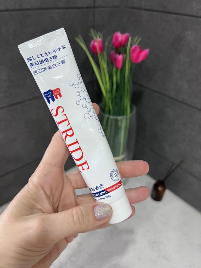 Stride Whitening Toothpaste (Japan) Japanese dental aesthetics: effectiveness and protection Japanese oral hygiene products are famous for not being excessively abrasive, focusing more on the chemical removal of stains and enamel repair rather than aggressive "scrubbing". ✨ Main Features Stride toothpaste stands out for a formula that aims to restore the natural whiteness of teeth without causing the classic sensitivity from chemical whitening. • Stain-Removing Technology: Uses agents that dissolve surface stains (coffee, tea, nicotine) by acting on the protein bonds that fix them to the enamel. • Protective Action: In addition to whitening, it creates a barrier that prevents new pigments from fixing immediately. • Taste and Texture: Unlike Western products that are often very "mentholated" and spicy, Stride usually has a very fine, clean, and persistent mint flavor, with a dense but not excessive foam. 🦷 Results on Teeth 1. Natural Whitening: Don't expect an immediate "bleach" effect (which often damages the enamel), but a return to the natural brightness of the tooth already after the first week. 2. Sensation of Cleanliness: The surface of the teeth feels extremely smooth to the touch with the tongue, a sign of effective plaque removal. 3. Zero Sensitivity: It's perfect for those with sensitive teeth but don't want to give up a brighter smile. 📦 Logistics and Shipping A remarkable strength was the delivery time. • Origin: Japan. • Arrival time: 15 days. • Assessment: Receiving a product from Japan in just two weeks in Italy is an excellent result. Usually transoceanic shipments can take up to a month; 15 days indicate premium logistics management and a smooth customs clearance. 📝 Final Considerations The strong point: The ability to polish and brighten without minimally damaging the enamel or irritating the gums. Who I recommend it to: To those who consume a lot of coffee or tea and are looking for a high-quality daily product that is superior to common supermarket toothpastes.