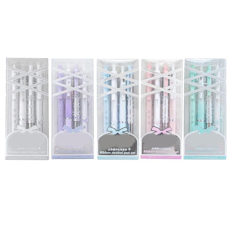 4 Pcs 0.5mm Gel Ink Pen Ballet Strap Bows Neutral Pen Retractable Black Ink Gel Pen Lovely Pressing Pen for Journaling