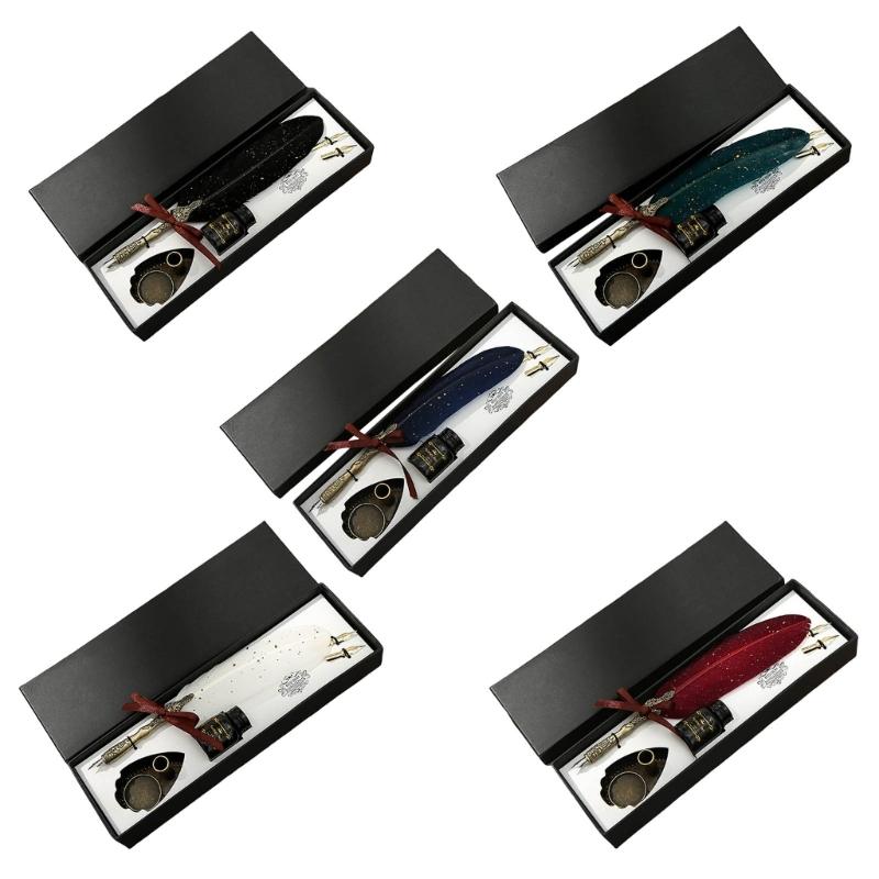 Vintage Signature Pen Calligraphy Pen for Writing, Delicate Gift Fancy Pen Feather Calligraphy Pen Set Luxury Quills Pen