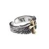 1Pc Wings Cross Graffiti Letters Open Ring Domineering Personality Men's Ring