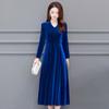Velvet Vintage Women Maxi Dress OL Style Oversize Round Neck Long Sleeves Evening Dress Slim Fit Pleated Bodycon Prom Dress